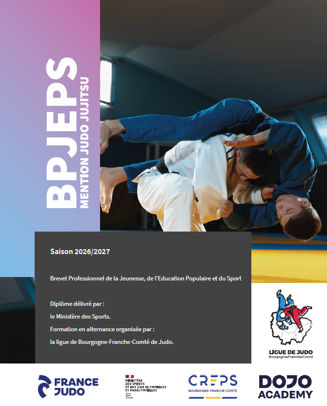 La ligue de Bourgogne-Franche-Comté de judo assure une formation préparant au Brevet Professionnel de la Jeunesse, de l’Éducation Populaire et de Sport mention Judo-JuJitsu. Cette formation est éligible à l'APPRENTISSAGE.
